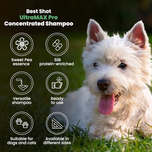 Best Shot UltraMAX Pro 4-in-1 Shampoo offers a practical and versatile grooming option for your pets by cleansing, conditioning, deodorizing, and enhancing coat brightness all at once. When applied as instructed and with appropriate oversight, it streamlines the grooming process while maintaining your pet’s coat in a healthy and fragrant state. Keeping an eye on any skin sensitivities guarantees a safe and pleasant experience for every pet.