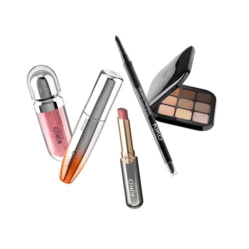 KIKO Milano Snow-Kissed Holiday Timeless Look Makeup Gift Set, Makeup Gift Set: Volumising Mascara, Eyeliner, Eyeshadow Palette, Lip Gloss And Lipstick